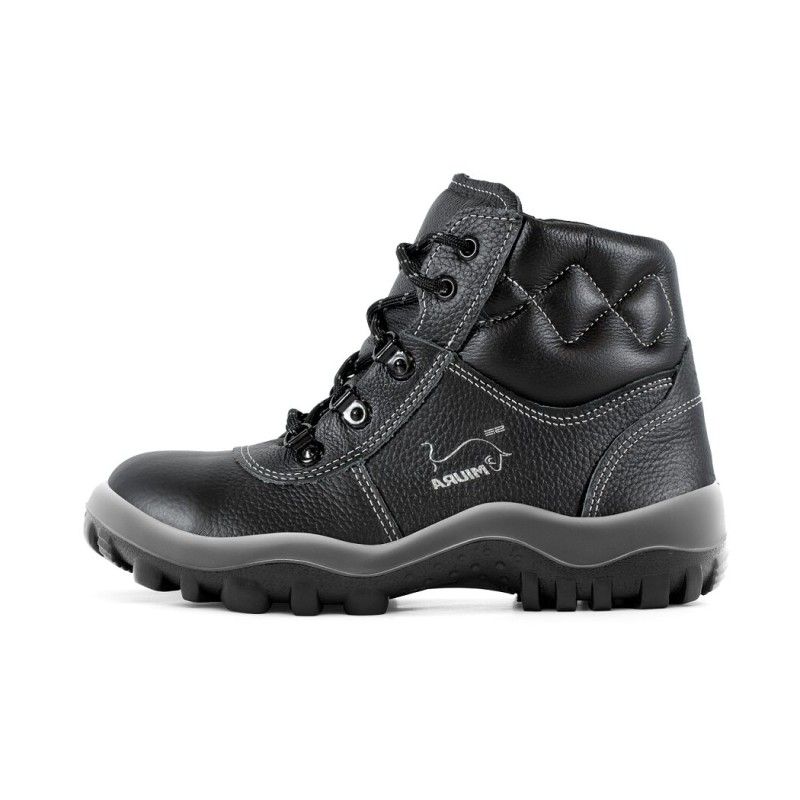 O cabedal da botina eletricista couro é confeccionado em vaqueta hidrofugada preta, oferecendo resistência mecânica e proteção contra umidade. Possui lingueta tipo fole acolchoada que impede a entrada de resíduos, além de colarinho macio que aumenta o conforto. O sistema de forração SafetDry proporciona excelente absorção e evaporação do suor, garantindo conforto prolongado.