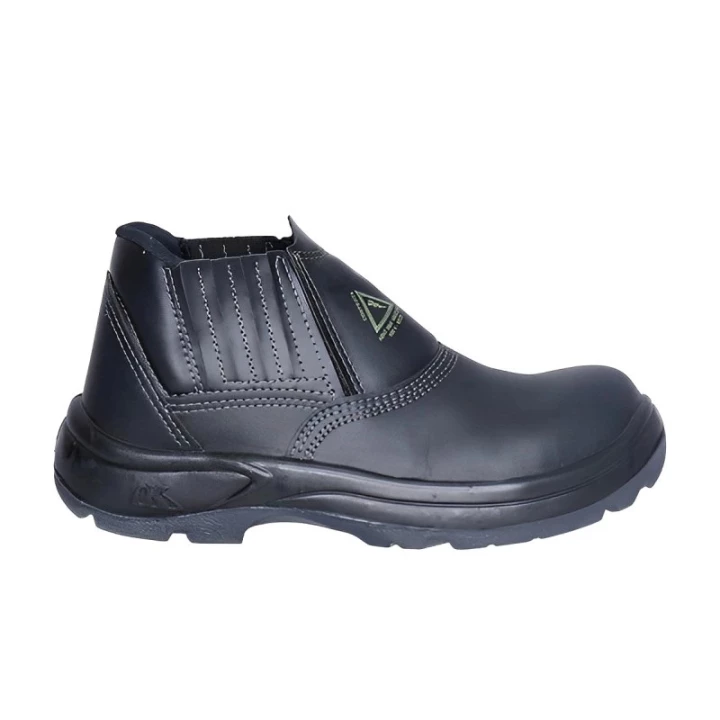 O cabedal da botina eletricista é confeccionado em microfibra de alta tecnologia, com linhas de 18/20 mm de espessura. Seu acabamento garante resistência à abrasão e maior durabilidade, enquanto o fechamento em elástico lateral facilita o calce e proporciona ajuste firme.