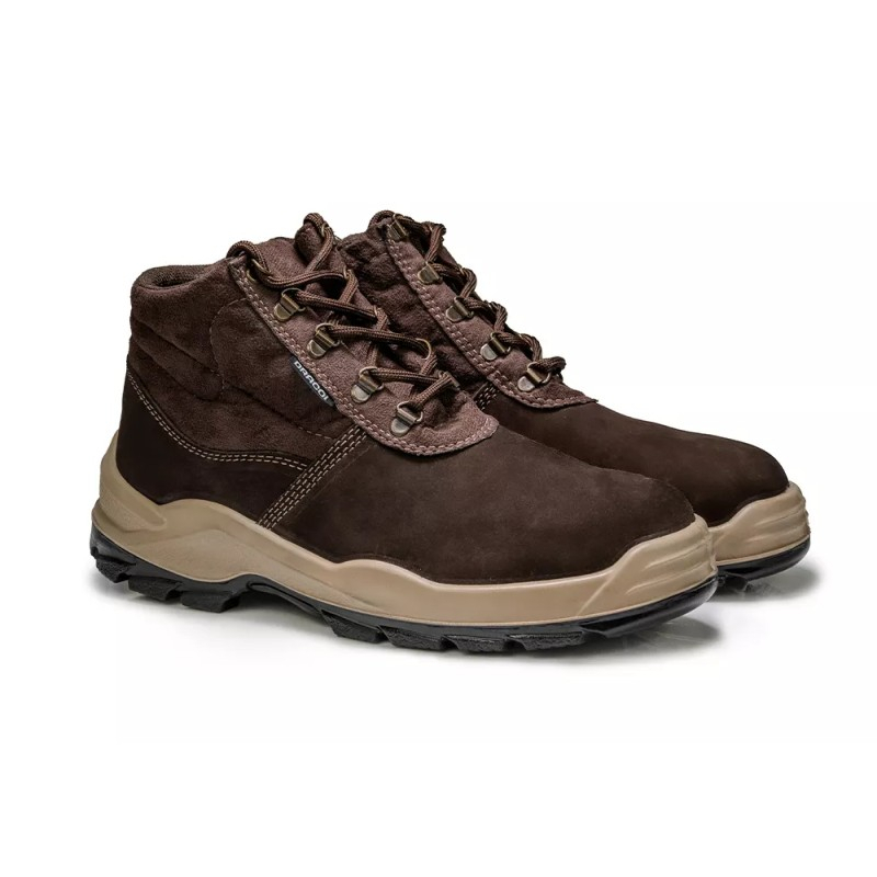 O cabedal da botina de segurança composite é confeccionado em couro nobuck com curtimento atravessado, garantindo resistência e flexibilidade. Possui forração interna da gáspea em não tecido e forro do cano em tecido com alto poder de absorção de suor e permeabilidade, proporcionando conforto térmico ao usuário.
