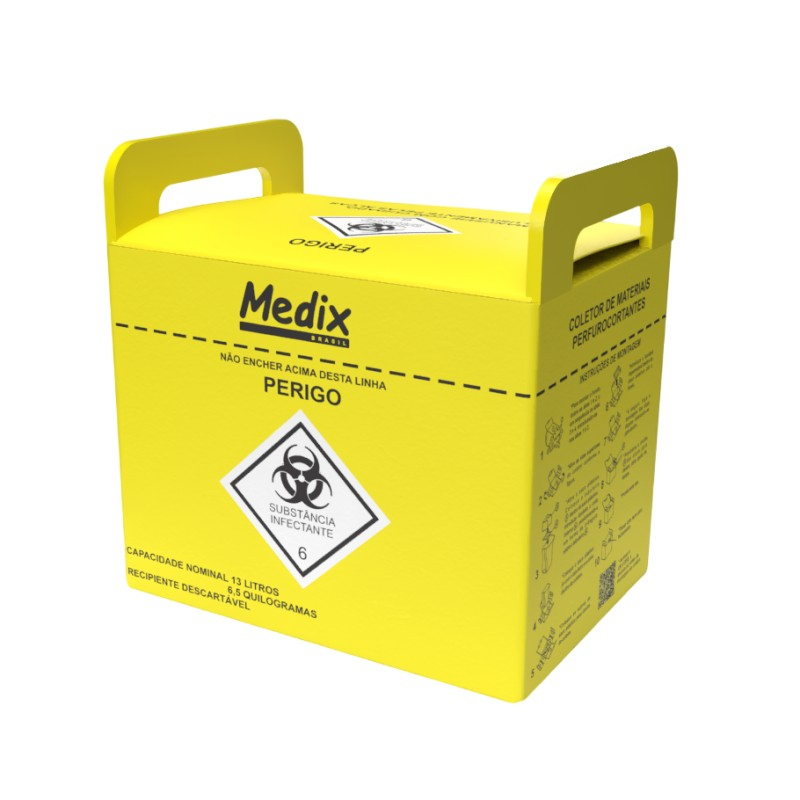 A Caixa Coletora De Perfurocortantes 13 Litros é recomendada para o descarte de agulhas, seringas, bisturis, escalpes, tubos de ensaio, vidros capilares, pipetas, fragmentos ósseos, osteotomos, cisalhas e dispositivos de eletrocautério. Essencial em hospitais, clínicas médicas e odontológicas, consultórios e laboratórios, essa caixa para descarte de resíduos cortantes minimiza riscos biológicos e contribui para a segurança dos profissionais da saúde.