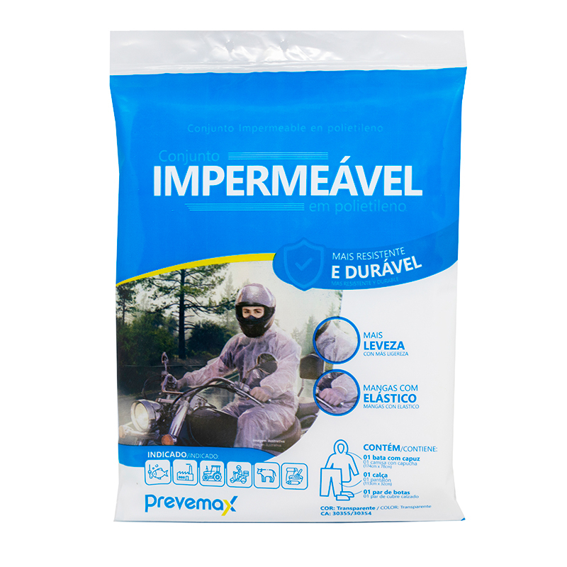 A capa de chuva motociclista é um EPI desenvolvido para proteção completa contra umidade em atividades profissionais e operacionais. Fabricada em polipropileno impermeável, a capa de chuva reutilizável oferece vedação eficiente, conforto térmico e liberdade de movimentos, sendo indicada para uso contínuo em ambientes externos. O conjunto completo inclui capa, calça, bota impermeável transparente e capuz com elástico, garantindo proteção integral do corpo. A capa de chuva motoboy é ideal para quem atua exposto à chuva intensa, vento e respingos, mantendo o usuário seco e protegido durante toda a jornada.