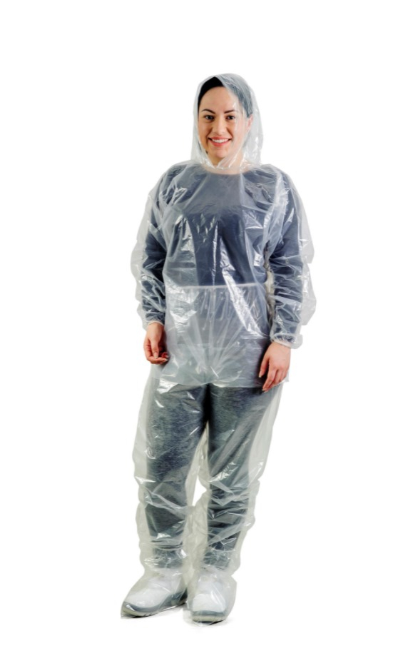 A capa de chuva reutilizável proporciona excelente vedação, flexibilidade e durabilidade. Seu material impermeável não é nocivo à saúde e não apresenta migração de compostos para contato com alimentos. A capa de chuva com touca protege cabeça e tronco, enquanto a bota integrada impede a entrada de água pelos pés, garantindo proteção completa mesmo em chuvas intensas.