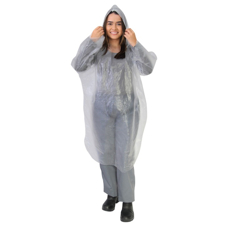 A capa de chuva impermeável garante proteção básica e imediata contra chuva e respingos, sendo leve, compacta e fácil de vestir. Como capa de chuva descartável, elimina a necessidade de higienização, reduz riscos de contaminação cruzada e facilita a logística em eventos e operações temporárias. A capa de chuva com touca amplia a área de proteção, oferecendo mais conforto em condições climáticas adversas.