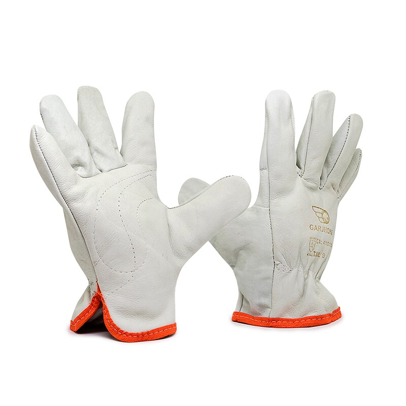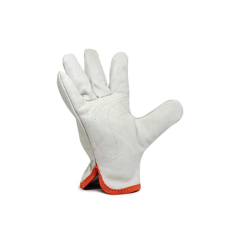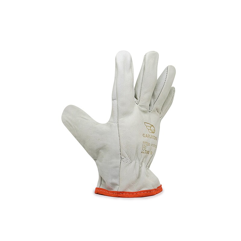 Luva de segurança confeccionada em vaqueta com reforço palmar interno, tipo petroleira, com elástico embutido no dorso, costurada com linha de nylon. Aprovado para proteção das mãos do usuário contra agente abrasivos, escoriantes, cortantes e perfurantes