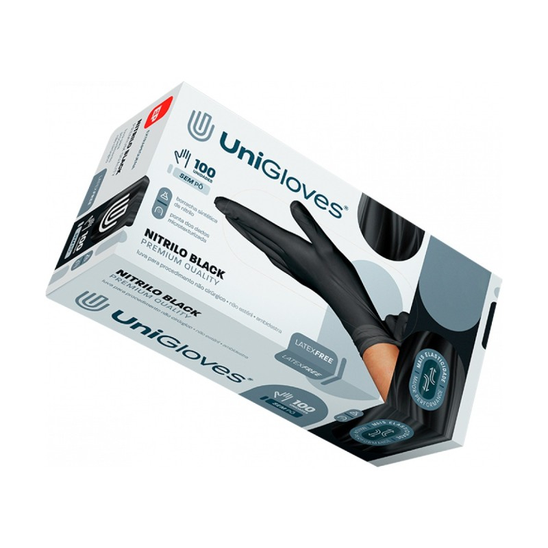 Luva Nitrílica Preta Descartável Sem Pó 100un Unigloves Black Premium CA 40814