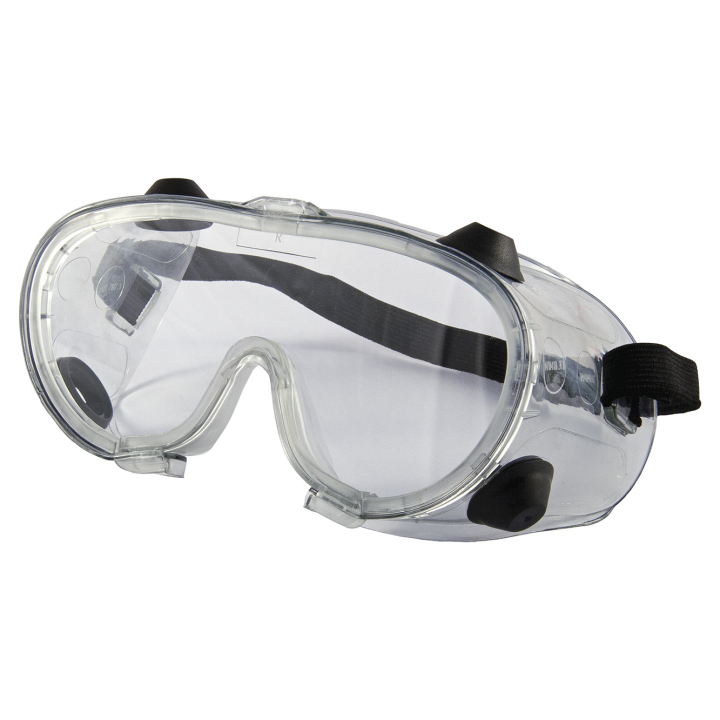 Óculos de segurança modelo ampla-visão constituído de armação confeccionada em peça única de pvc flexível transparente com sistema de ventilação indireta composto de duas válvulas localizadas na parte superior e duas válvulas na parte inferior da armação, visor policarbonato incolor disponível nas opções com e sem tratamento. O ajuste à face do usuário é feito por meio de um tirante elástico. Os óculos cobrem toda a região m torno dos olhos do usuário.