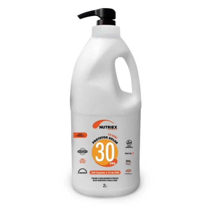 O Protetor Solar FPS 30 Corporal Nutriex Profissional foi desenvolvido especialmente para oferecer alta proteção à pele contra os efeitos nocivos da radiação UVA e UVB. Com textura leve, rápida absorção e toque seco, garante aplicação prática e confortável, sem deixar resíduos esbranquiçados. Este protetor solar profissional é ideal para uso diário em atividades com alta exposição solar, prevenindo queimaduras e minimizando o envelhecimento precoce da pele. Sua fórmula contém o exclusivo complexo antioxidante Bioactive E® e extrato de aloe vera, que proporcionam ação hidratante, cicatrizante e protetora.