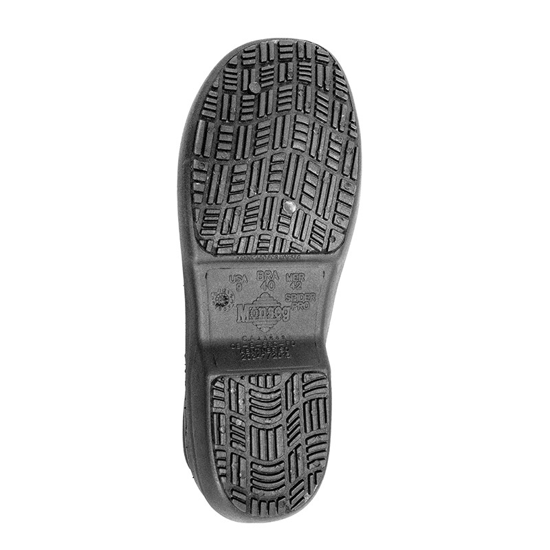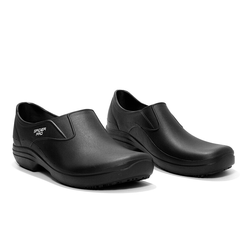 O cabedal do sapato Spider Pro é desenvolvido em TPE expandido, material leve, impermeável e resistente a impactos. Sua estrutura proporciona flexibilidade e rápida higienização, garantindo proteção e conforto mesmo em rotinas intensas.