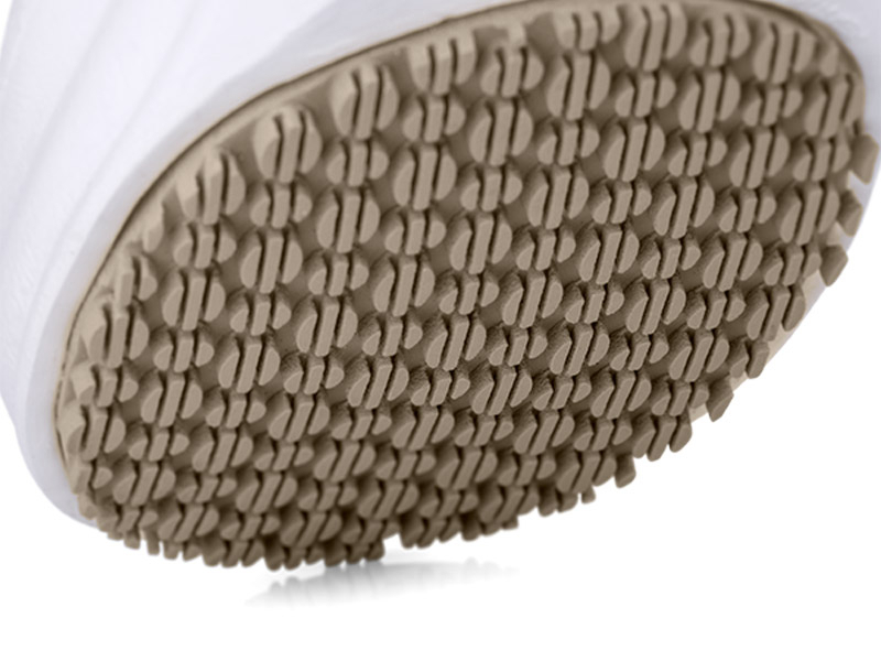 O cabedal é confeccionado em EVA de alta qualidade, material leve, flexível e resistente à umidade. Sua estrutura impermeável impede a absorção de líquidos, facilita a higienização com sabão, detergente ou cloro e proporciona conforto anatômico durante longos períodos de uso.